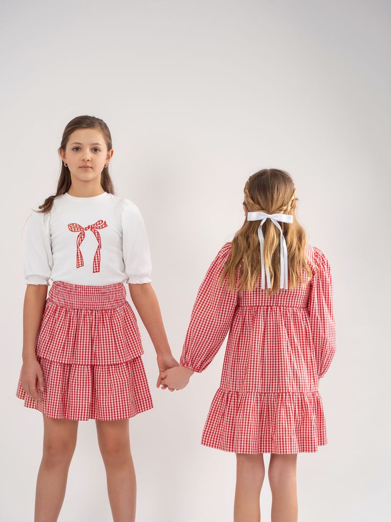 Teela Gingham Bow Top - Coral